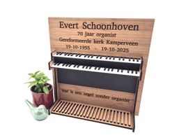 De gemeenteleden van deze kerk wilden hun waardering voor de organist tonen en hebben ons gevraagd om een uniek geschenk te ontwerpen en maken. Het ontwerp is geïnspireerd op het orgel waar de organist wekelijks in de kerk op speelt. Een unieker cadeau is niet te vinden en past helemaal bij iemand die een leven lang muziek maakt.